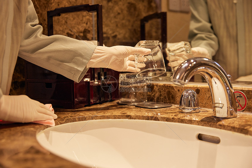 清潔衛(wèi)生間時一定要戴膠皮手套;清潔用的毛巾要分開使用,勤清洗;消毒工作要細致全面,不得濺灑;不可將裝有藥劑的噴壺亂放,應放置在工具盒里;不能用沾有藥劑的毛巾擦拭不銹鋼物品,防止蝕壞;垃圾收集后系緊口袋放好。