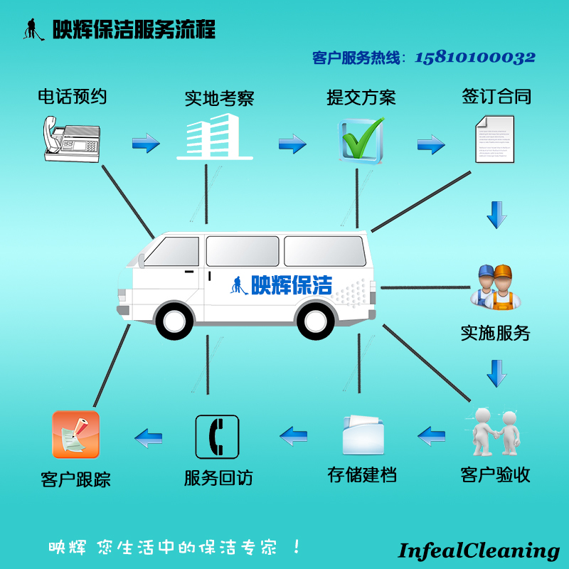 北京舒特是一家綜合性的通州區(qū)專(zhuān)業(yè)保潔公司,目前主營(yíng)業(yè)務(wù)有:家庭保潔、開(kāi)荒保潔、地毯清洗、大理石打磨拋光,托管保潔等清潔服務(wù),映輝所有保潔人員均經(jīng)過(guò)專(zhuān)業(yè)的保潔培訓(xùn),嚴(yán)格的質(zhì)量過(guò)程控制系統(tǒng)確保始終如一的優(yōu)質(zhì)服務(wù),下面映輝北京保潔公司服務(wù)流程向大家介紹下: